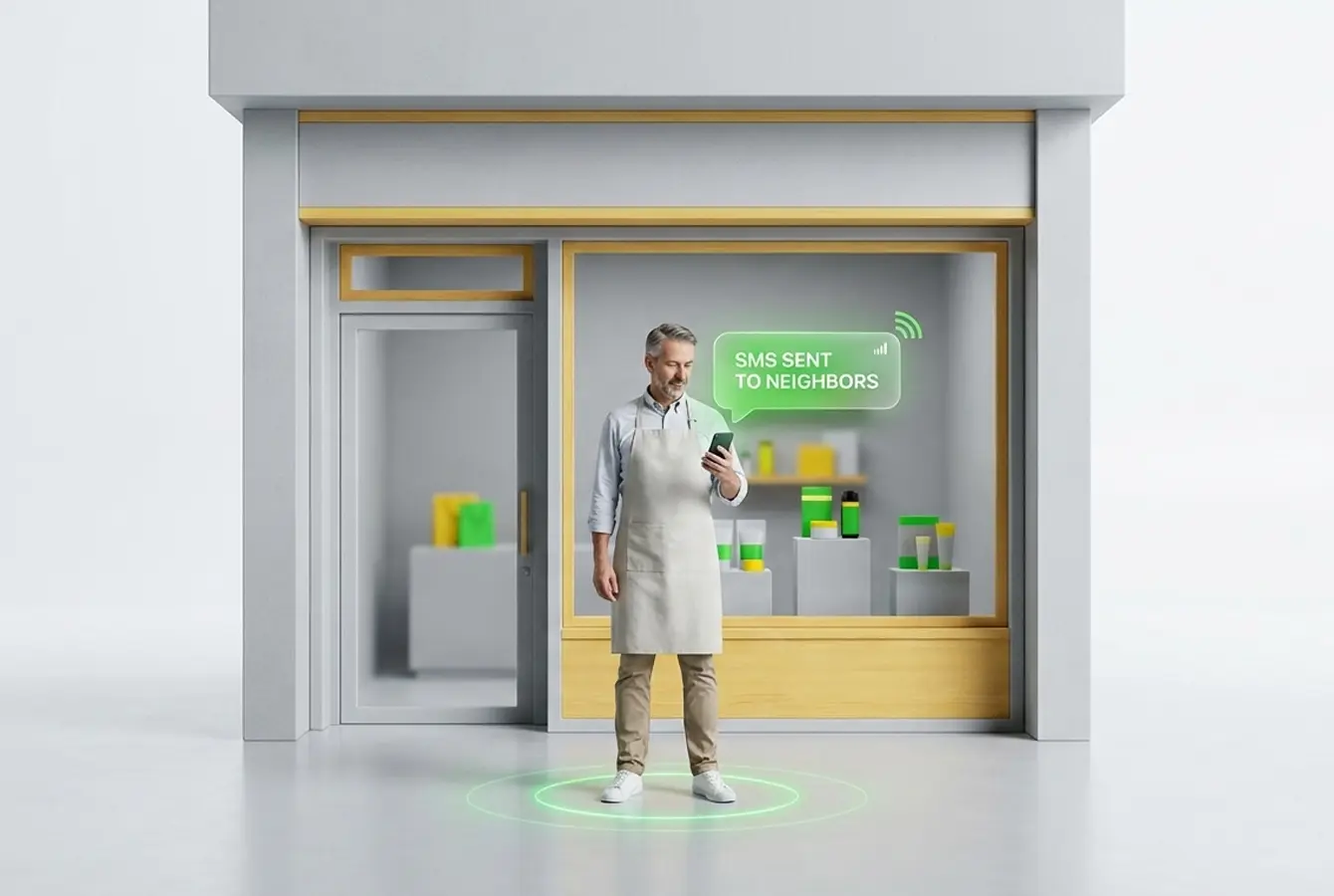 صاحب کسب و کار در حال ارسال پیامک هدفمند به مردم محلهصاحب کسب و کار در حال ارسال پیامک هدفمند به مردم محله
