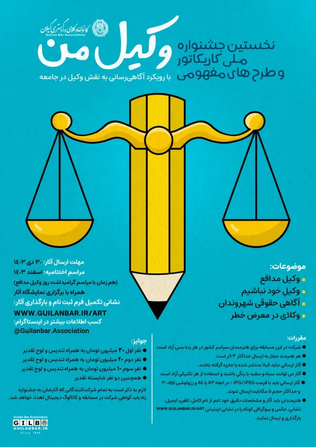 پایگاه خبری تحلیف اعلام کرد که کانون وکلای دادگستری گیلان قصد دارد نخستین جشنواره ملی کاریکاتور و طرح‌های مفهومی با عنوان «وکیل من» را با هدف آگاهی‌بخشی به جامعه درباره نقش وکیل برگزار کند.